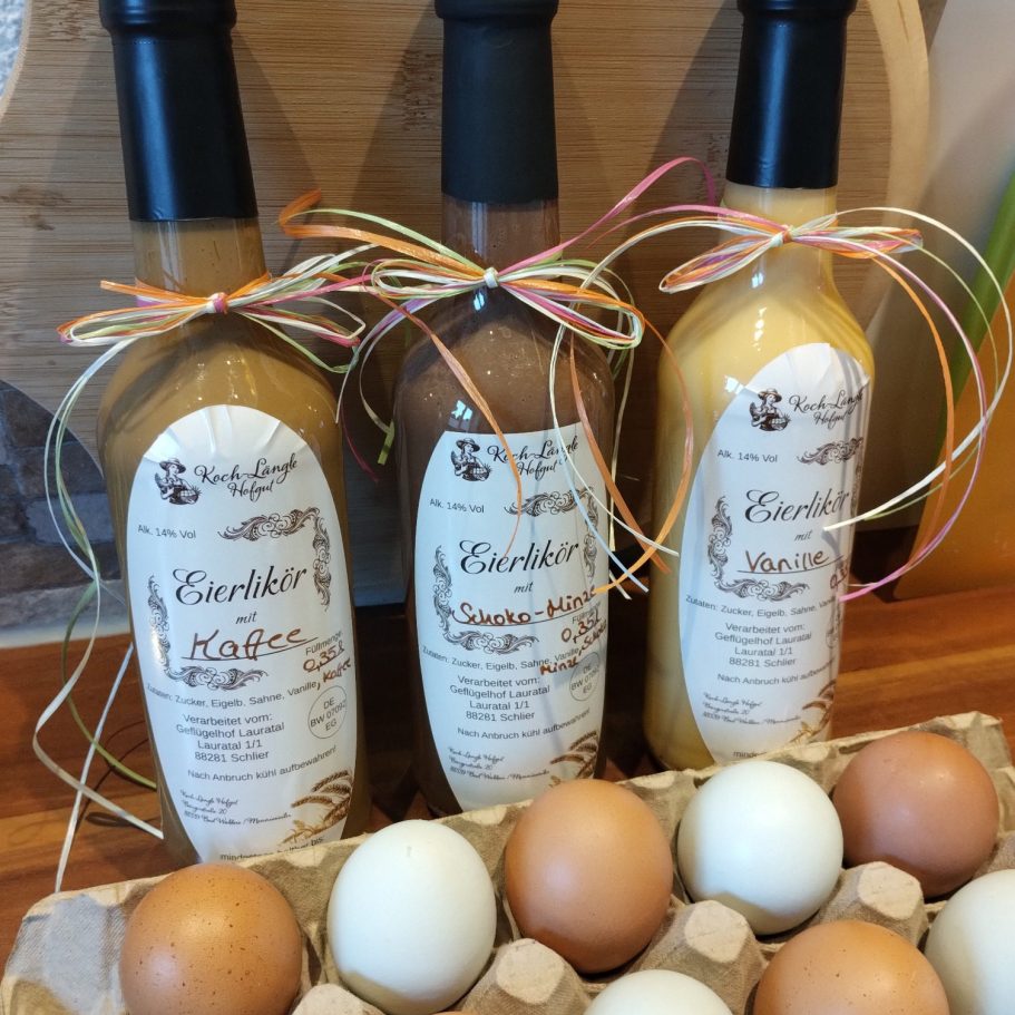Seit April 2025 gibt es feinen Eierlikör in vielen verschiedenen Geschmacksrichtungen. Neben dem Klassiker "Vanille" gibt es auch die Sorten "Schoko", "Kaffee", "Orange" und "Schoko-Minze". Liebevoll hergestellt vom Geflügelhof Lauratal aus dem Eigelb unserer eigenen Eier.